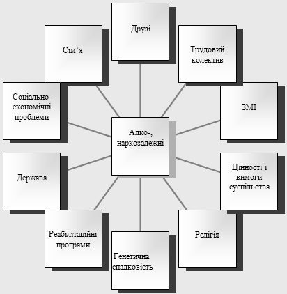 Рис.1.1.Впливові компоненти на алко-, наркозлежних осіб