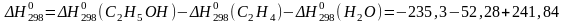 CH2 = CH2(г) + H2O(пар) C2H5OH(г) T=493K