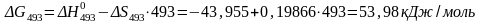 Энергия Гиббса для реакции при 493 К вычисляется по уравнению: