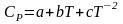 Зависимость удельной изобарной теплоёмкости от температуры выражается уравнениями: