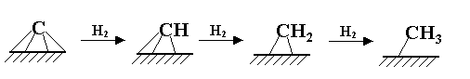 На второй стадии поверхностный карбид гидрируется с образованием фрагментов СНx (х = 1-3):