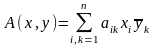 Определение 5. Функция A(x, y) называется полуторалинейной формой векторов x и y комплексного пространства или билинейной формой в комплексном векторном пространстве, если при фиксированном y форма A(x, y) есть линейная форма от x, а при фиксированном x форма A(x, y) есть полученная форма от y.