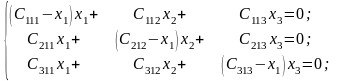 2. Указанные системы можно получить, взяв матрицы (24), транспонировать их, рассмотреть разности C(1)-X1E, C(2)-X2E, C(3)-X3E и затем умножить полученные матрицы на столбец (x1, x2, x3)Т (знак Т обозначает транспонирование).