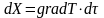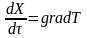 Использование градиента позволяет представить скалярное поле в виде некоторых линий, в каждой точке которой направление касательной к этой линии задается градиентом, то есть мгновенная скорость продвижения по такой линии численно равна градиенту. Мгновенное изменение вектора состава, равное dX, будет также вектором, принадлежащим концентрационному симплексу и коллинеарному градиенту. Следовательно, имеем следующую функциональную зависимость: