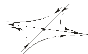 Различают несколько типов особых точек, каждому из которых соответствует определенный ход дистилляционных линий. Например, для случая трехкомпонентных смесей в случае узловых точек все траектории сходятся в особой точке (устойчивый узел) или выходят из нее (неустойчивый узел). В случае седел – часть траекторий сходятся к особой точке, часть – выходят из нее и часть траекторий имеют в окрестности особой точки гиперболический ход, сначала приближаясь к ней, а потом удаляясь от нее. На рис.2 показан ход дистилляционных линий в окрестностях особых точек различных типов.