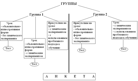 Апробацию нашего эксперимента начинали с формирования двух групп учащихся, с исходно одинаковым уровнем подготовки по химии.
