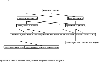 Схема 2. Классификация умений Под предметными, или специальными, умениями ученые-методисты понимают такие умения, которые имеют научно-предметную основу, то есть формируются средствами предмета. Они непосредственно связаны с операциями над химическими объектами, явлениями. Обобщенными умения становятся при определенных условиях, при выполнении специальной методики.