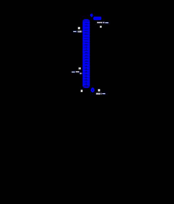 Ректификацией называется процесс переноса компонента (компонентов) между кипящей жидкой и насыщенной конденсирующейся паровой фазами при многоступенчатом противотоке этих фаз[1]. При чередовании по схеме противотока операций частичной конденсации паровой и испарения жидкой смесей можно получить выходы высококипящего компонента (ВКК) и низкокипящего компонента (НКК), примерно соответствующие их содержанию в исходной смеси.