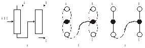 Рис.1.6. Схемы со связанными тепловыми потоками и минимальным числом колонн для n=2-3.