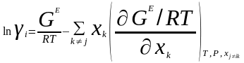 Коэффициенты активности получают из избыточных энергий Гиббса, однако на практике используют обратную процедуру: GE определяют из коэффициентов активности. Ниже приведены основные уравнения: