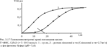 Криві поглинання кисню суслом та модельним розчином лінолевої кислоти у фосфатному буфері зображені на рис.3.17.