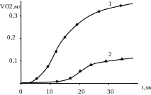 Рис. 3.15 Газоволюмометричні криві поглинання кисню суслом