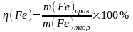Подставляя полученные значения практической и теоретической массы железа в первоначальную формулу, получим выход железа: