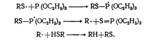 Фосфиты не переэтерифицируются меркаптанами; при взаимодействии этих реагентов получаются углеводороды и тиофосфаты: