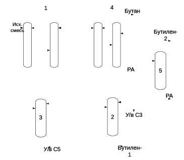 Рис.5. Схема процесса разделения бутан-бутиленовых смесей: