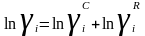 С и R – комбинаторный и остаточный вклады в коэффициент активности жидкости.