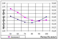 | Расход ЭА, моль/час | Флегма колонны 2 | Энергозатраты, ГДж/ч | |