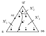 Рис.13. Фазовая диаграмма смеси циклогексан – бензол – этилбензол