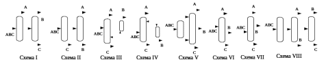 Рис.11. Варианты схем разделения трехкомпонентной зеотропной смеси