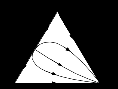 В смеси ЦГ-Б-ЭБ азеотроп имеет минимальную температуру и является особой точкой типа неустойчивый узел. В концентрационном симплексе один пучок дистилляционных линий опирается на точки азеотропа и тяжелокипящего компонента.