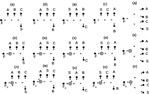 ). В целом рассмотренные преобразования представляют собой отображения одного множества графов на другое (одного множества схем на другое). Если обозначить множество схем из простых колонн П, множество схем из одной сложной колонны с боковыми секциями как Ф, множество схем из одной сложной колонны как I, то