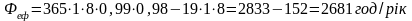 Феф – ефективний річний фонд часу роботи к-устаткування, дорівнює