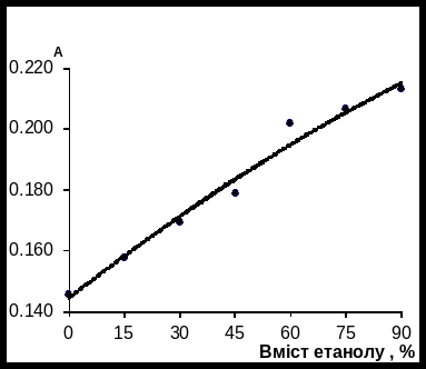 Таблиця 2.4.1 Результати вимірювання впливу етанолу на оптичну густину