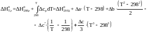 Таблица 4.3. Теплоемкость веществ при температурах Т1 и Т2.
