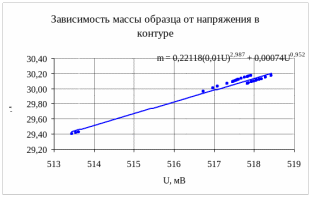 где w – число витков в катушки, lк – длина катушки, μ – магнитная проницаемость образца, q – поперечное сечение катушки, lэ – эквивалентное линейное перемещение, под которой понимаем такое количество материала (массу), которое соответствует линейному перемещению на ширину одного витка. Таким образом, очевидно, что индуктивность катушки будет являться некоторой функцией от количества материала (массы) находящейся в ней или L = f(m), при условии что w, lк, q, μ – const.