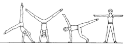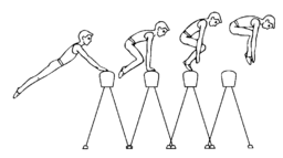 e.g. He supports himself in an upright position with his arms extended sideways.