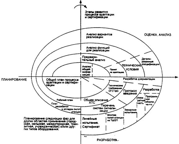 Реализованная в книге концепция иерархических спецификаций систем сигнализации в некоторой степени соответствует современной спиральной модели развития больших программных систем Б.Боэма [104] и представлена на рис.1.12. Некоторая незавершенность спиральной модели, обусловленная законом непрерывных изменений Биледи и Лемана: