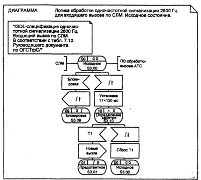 Рис.2.14. Фрагмент SDL-диаграммы процесса обработки входящего вызова одночастотной системы сигнализации 2600 Гц по СЛМ