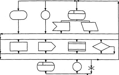 Указатели стрелок требуются всякий раз, когда сходятся две линии связи или когда линия связи входит в OUT-соединитель или символ состояния. Указатели стрелок запрещаются на линиях связи, входящих в символы ввода. При всех других обстоятельствах указатели стрелок являются необязательными.