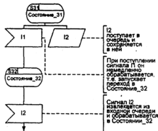 Для описания процесса определено еще одно более общее понятие - сохранение, дающее возможность выборочной задержки начала обработки входных сигналов (рис. 2.7), т.е. априорного задания порядка поступления и времени нахождения в очереди. Сохранение используется для обозначения конструкции, сохраняющей сигналы от их потери до того, как их начнут обрабатывать.