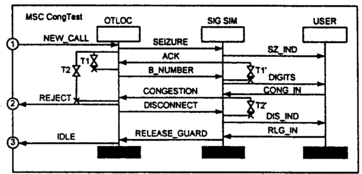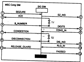 В приведенном описании определен момент SIGTEST. Сообщения SEIZURE, ACK, BJMUMBER, CONGESTION, DISCONNECTION, RELEASE_GUARD были введены для сценария MSC Cong. Сообщения SZ_IND (индикация занятия), DIGITS (цифры номера), DIS_IND (индикация разъединения) и PASSED (тест прошел) дают информацию оператору о прохождении соответствующих этапов испытаний.