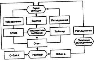 Рис. 2.19. Сценарий работы имитатора протокола обмена сигналами по СЛ при занятости промпутей