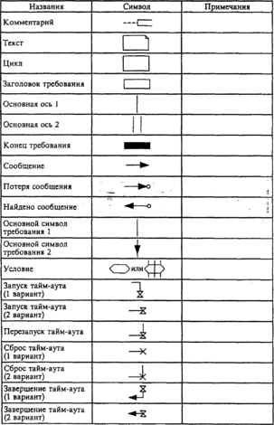 Основные символы, используемые в MSC, приведены в таблице 2.2.