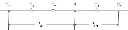 На схеме П1 и П2 – станции соответственно первой и следующей погрузки, В – станция выгрузки вагона, Т1, Т2, Т3 и т.д. – технические станции (сортировочные и участковые).