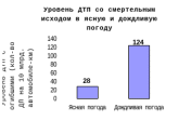 Согласно международной практике во время осадков количество ДТП увеличивается (Диаграмма 17). Отмечается также, что неожиданные осадки после продолжительного сухого периода вызывают резкое увеличение количества ДТП. Затяжные осадки вызывают адаптацию водителей, в результате чего количество ДТП постепенно уменьшается.