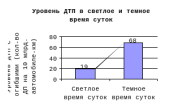 Установлено, что в темное время суток количество ДТП примерно в 1.5 – 3.5 раза выше по сравнению со светлым временем (См.Диаграмму 15). Возможно, плохая видимость не является единственной причиной, поскольку ночью за рулем может быть больше выпивших, утомленных, а поэтому, менее внимательных водителей. Неблагоприятные погодные условия ночью оказывают более негативное влияние, чем днем.