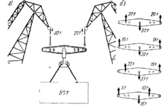 |   Рис 55. Спаренная работа кранов: а — балансирная траверса; б — схема распределения усилий между точками подвеса  |