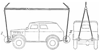Рис. 12. Застропка автомобиля УАЗ-469 фиксирующимися зацепами
