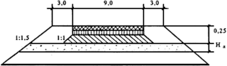Боковые резервы устраивают на непригодных для сельского хозяйства землях при высоте насыпи менее 1,5 м, на глубину 0,4-1,5 м, но не ниже уровня грунтовых вод. Объем боковых резервов рассчитывается с учетом конструкции земляного полотна, ширины полосы отвода, ценности земель, пригодности грунта, уровня грунтовых вод и т.п.