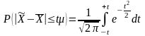 | t | 1 | 1,5 | 1,96 | 2 | 2,5 | 2,58 | 3 | 3,5 |