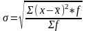 Если статистические данные представляют собой отдельные значения варьирующего признака (варианты) Х и соответствующие им частоты (число случаев повторения признака X) f, то для определения среднего признака Х применяется средняя арифметическая взвешенная: