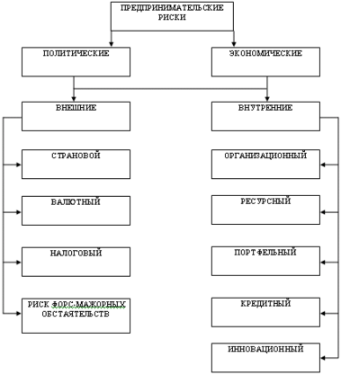 Под хозяйственным (предпринимательским) понимается риск, возникающий при любых видах деятельности, связанных с производством продукции, товаров, услуг, их реализацией, товарно-денежными и финансовыми операциями, коммерцией, осуществлением социально-экономических и научно-технических проектов. Виды предпринимательских рисков: