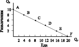 Кривые безразличия лишь показывают возможность замены одного блага другим. Однако они не определяют, какой именно набор товаров потребитель считает для себя наиболее выгодным. Эту информацию дает нам бюджетное ограничение. Бюджетное ограничение показывает, какие потребительские наборы можно приобрести за данную сумму денег.