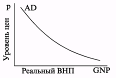 Нисходящая кривая AD указывает на то, что чем ниже уровень цен, тем больше реальный объем ВНП, который будет куплен.