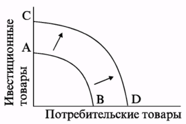 В широком смысле слова экономический рост означает поступательное прогрессивное развитие экономики, развитие, увеличение способности экономики производить из года в год все больше товаров и услуг. Графически экономический рост может быть представлен как сдвиг кривой производственных возможностей вправо и вверх.