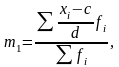 где хi – индивидуальное значение признака (вариант); n – число групп (единиц совокупности); m1 – первый статистический момент; с – произвольная постоянная величина, на которую уменьшаются все значения хi; d – общий множитель для всех значений разности (хi – с); fi – «вес» (частота, частость) i-го уровня.